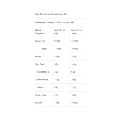 Amazonia Raw Protein Bar - Choc Chip Cookie Dough 40g