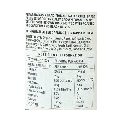 {"id":9488102261032,"title":"Aurelio Pasta Sauce - Arrabbiata Organic 500g","handle":"aurelio-pasta-sauce-arrabbiata-organic-500g","description":"\u003cp class=\"font_2 wixui-rich-text__text\"\u003e\u003cspan\u003eThe Arrabbiata pasta sauce is a traditional Italian Chilli pasta sauce that has just the right amount of warmth. Using organically grown tomatoes, it’s delicious on its own or combined with roasted red capsicum and black olives.\u003c\/span\u003e\u003c\/p\u003e\n\u003ch5\u003eReviews\u003c\/h5\u003e\n\u003cp\u003eReviews go here\u003c\/p\u003e\n\u003ch5\u003eIngredients\u003c\/h5\u003e\n\u003cp\u003eAny images, tags, filters, product categories, and any other information on this website showing ingredients, nutrition panels, or allergy statements are for guidance only, as manufacturers often change their formulations without notice. Please contact the manufacturer for the most up-to-date ingredient information, or email us to confirm the ingredients of the stock currently on hand.\u003c\/p\u003e","published_at":"2025-09-15T16:36:14+10:00","created_at":"2024-11-08T10:10:13+11:00","vendor":"Aurelio","type":"General","tags":["Cooking Sauces","Sydney Store"],"price":582,"price_min":582,"price_max":582,"available":true,"price_varies":false,"compare_at_price":null,"compare_at_price_min":0,"compare_at_price_max":0,"compare_at_price_varies":false,"variants":[{"id":49490756862248,"title":"Default Title","option1":"Default Title","option2":null,"option3":null,"sku":"9326142010013","requires_shipping":true,"taxable":false,"featured_image":null,"available":true,"name":"Aurelio Pasta Sauce - Arrabbiata Organic 500g","public_title":null,"options":["Default Title"],"price":582,"weight":0,"compare_at_price":null,"inventory_quantity":3,"inventory_management":"shopify","inventory_policy":"deny","barcode":null,"requires_selling_plan":false,"selling_plan_allocations":[]}],"images":["\/\/crueltyfreeshop.myshopify.com\/cdn\/shop\/files\/Aurelio_PS_Arrabbiata_ORganic_500g_web.jpg?v=1731021013","\/\/crueltyfreeshop.myshopify.com\/cdn\/shop\/files\/AurelioPrimavera-NutritionalInformation_2.jpg?v=1764738158"],"featured_image":"\/\/crueltyfreeshop.myshopify.com\/cdn\/shop\/files\/Aurelio_PS_Arrabbiata_ORganic_500g_web.jpg?v=1731021013","options":["Title"],"media":[{"alt":null,"id":40439974723880,"position":1,"preview_image":{"aspect_ratio":1.0,"height":2048,"width":2048,"src":"\/\/crueltyfreeshop.myshopify.com\/cdn\/shop\/files\/Aurelio_PS_Arrabbiata_ORganic_500g_web.jpg?v=1731021013"},"aspect_ratio":1.0,"height":2048,"media_type":"image","src":"\/\/crueltyfreeshop.myshopify.com\/cdn\/shop\/files\/Aurelio_PS_Arrabbiata_ORganic_500g_web.jpg?v=1731021013","width":2048},{"alt":null,"id":43122441421096,"position":2,"preview_image":{"aspect_ratio":1.0,"height":400,"width":400,"src":"\/\/crueltyfreeshop.myshopify.com\/cdn\/shop\/files\/AurelioPrimavera-NutritionalInformation_2.jpg?v=1764738158"},"aspect_ratio":1.0,"height":400,"media_type":"image","src":"\/\/crueltyfreeshop.myshopify.com\/cdn\/shop\/files\/AurelioPrimavera-NutritionalInformation_2.jpg?v=1764738158","width":400}],"requires_selling_plan":false,"selling_plan_groups":[],"content":"\u003cp class=\"font_2 wixui-rich-text__text\"\u003e\u003cspan\u003eThe Arrabbiata pasta sauce is a traditional Italian Chilli pasta sauce that has just the right amount of warmth. Using organically grown tomatoes, it’s delicious on its own or combined with roasted red capsicum and black olives.\u003c\/span\u003e\u003c\/p\u003e\n\u003ch5\u003eReviews\u003c\/h5\u003e\n\u003cp\u003eReviews go here\u003c\/p\u003e\n\u003ch5\u003eIngredients\u003c\/h5\u003e\n\u003cp\u003eAny images, tags, filters, product categories, and any other information on this website showing ingredients, nutrition panels, or allergy statements are for guidance only, as manufacturers often change their formulations without notice. Please contact the manufacturer for the most up-to-date ingredient information, or email us to confirm the ingredients of the stock currently on hand.\u003c\/p\u003e"}