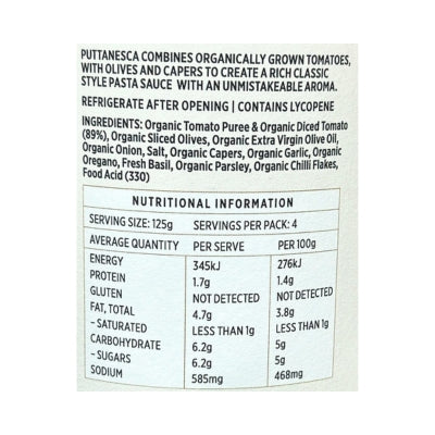 {"id":9488101736744,"title":"Aurelio Pasta Sauce - Puttanesca Organic 500g","handle":"aurelio-pasta-sauce-puttanesca-organic-500g","description":"\u003cp\u003e\u003cspan\u003ePuttanesca combines organically grown tomatoes with olives and capers to create a rich classic style pasta sauce with an unmistakable aroma.\u003c\/span\u003e\u003c\/p\u003e\n\u003ch5\u003eReviews\u003c\/h5\u003e\n\u003cp\u003eReviews go here\u003c\/p\u003e\n\u003ch5\u003eIngredients\u003c\/h5\u003e\n\u003cp\u003eAny images, tags, filters, product categories, and any other information on this website showing ingredients, nutrition panels, or allergy statements are for guidance only, as manufacturers often change their formulations without notice. Please contact the manufacturer for the most up-to-date ingredient information, or email us to confirm the ingredients of the stock currently on hand.\u003c\/p\u003e","published_at":"2025-09-15T16:27:41+10:00","created_at":"2024-11-08T10:09:23+11:00","vendor":"Aurelio","type":"General","tags":["Cooking Sauces","Sydney Store"],"price":582,"price_min":582,"price_max":582,"available":true,"price_varies":false,"compare_at_price":null,"compare_at_price_min":0,"compare_at_price_max":0,"compare_at_price_varies":false,"variants":[{"id":49490749030696,"title":"Default Title","option1":"Default Title","option2":null,"option3":null,"sku":"9326142000816","requires_shipping":true,"taxable":false,"featured_image":null,"available":true,"name":"Aurelio Pasta Sauce - Puttanesca Organic 500g","public_title":null,"options":["Default Title"],"price":582,"weight":0,"compare_at_price":null,"inventory_quantity":2,"inventory_management":"shopify","inventory_policy":"deny","barcode":null,"requires_selling_plan":false,"selling_plan_allocations":[]}],"images":["\/\/crueltyfreeshop.myshopify.com\/cdn\/shop\/files\/Aurelio_Puttanesca_Organic_500g_2000x2000_8a258f7e-c327-408b-9933-b5024ad67250.jpg?v=1731020963","\/\/crueltyfreeshop.myshopify.com\/cdn\/shop\/files\/AurelioPuttanesca-NutritionalInformation.jpg?v=1764740010"],"featured_image":"\/\/crueltyfreeshop.myshopify.com\/cdn\/shop\/files\/Aurelio_Puttanesca_Organic_500g_2000x2000_8a258f7e-c327-408b-9933-b5024ad67250.jpg?v=1731020963","options":["Title"],"media":[{"alt":null,"id":40439967613224,"position":1,"preview_image":{"aspect_ratio":1.0,"height":2000,"width":2000,"src":"\/\/crueltyfreeshop.myshopify.com\/cdn\/shop\/files\/Aurelio_Puttanesca_Organic_500g_2000x2000_8a258f7e-c327-408b-9933-b5024ad67250.jpg?v=1731020963"},"aspect_ratio":1.0,"height":2000,"media_type":"image","src":"\/\/crueltyfreeshop.myshopify.com\/cdn\/shop\/files\/Aurelio_Puttanesca_Organic_500g_2000x2000_8a258f7e-c327-408b-9933-b5024ad67250.jpg?v=1731020963","width":2000},{"alt":null,"id":43122748129576,"position":2,"preview_image":{"aspect_ratio":1.0,"height":400,"width":400,"src":"\/\/crueltyfreeshop.myshopify.com\/cdn\/shop\/files\/AurelioPuttanesca-NutritionalInformation.jpg?v=1764740010"},"aspect_ratio":1.0,"height":400,"media_type":"image","src":"\/\/crueltyfreeshop.myshopify.com\/cdn\/shop\/files\/AurelioPuttanesca-NutritionalInformation.jpg?v=1764740010","width":400}],"requires_selling_plan":false,"selling_plan_groups":[],"content":"\u003cp\u003e\u003cspan\u003ePuttanesca combines organically grown tomatoes with olives and capers to create a rich classic style pasta sauce with an unmistakable aroma.\u003c\/span\u003e\u003c\/p\u003e\n\u003ch5\u003eReviews\u003c\/h5\u003e\n\u003cp\u003eReviews go here\u003c\/p\u003e\n\u003ch5\u003eIngredients\u003c\/h5\u003e\n\u003cp\u003eAny images, tags, filters, product categories, and any other information on this website showing ingredients, nutrition panels, or allergy statements are for guidance only, as manufacturers often change their formulations without notice. Please contact the manufacturer for the most up-to-date ingredient information, or email us to confirm the ingredients of the stock currently on hand.\u003c\/p\u003e"}