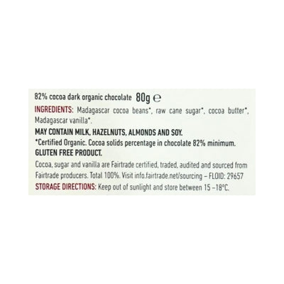 Bennetto Organic Dark Chocolate 82% Super Dark 80g (cold)