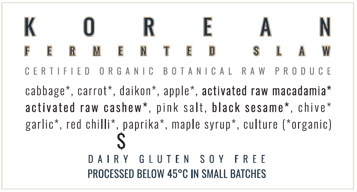 {"id":9431233888552,"title":"Botanical Cuisine Korean Fermented Slaw 325g (cold)","handle":"botanical-cuisine-korean-fermented-slaw-325g","description":"\u003cp\u003e\u003cspan\u003eBotanical Cuisine's Korean Fermented Slaw is a spicy, tangy creation inspired by traditional Korean kimchi. This slaw is made with clean, raw ingredients and fermented to provide beneficial probiotics. Its bold flavour and crunchy texture make it perfect for adding to salads, sandwiches, or enjoying as a side dish. This Korean fermented slaw offers a delicious, healthful option for those seeking a gourmet, plant-based twist on a classic Korean staple.\u003c\/span\u003e\u003c\/p\u003e\n\u003ch5\u003eReviews\u003c\/h5\u003e\n\u003cp\u003eReviews go here\u003c\/p\u003e\n\u003ch5\u003eIngredients\u003c\/h5\u003e\n\u003cp\u003eAny images, tags, filters, product categories, and any other information on this website showing ingredients, nutrition panels, or allergy statements are for guidance only, as manufacturers often change their formulations without notice. Please contact the manufacturer for the most up-to-date ingredient information, or email us to confirm the ingredients of the stock currently on hand.\u003c\/p\u003e\n\u003ch5\u003eImportant Shipping Note\u003c\/h5\u003e\n\u003cdiv\u003e\n\u003cspan\u003eAll orders containing chilled products, frozen products and chocolates must include a Cooler to protect them in transit. The\u003c\/span\u003e\u003cspan\u003e \u003c\/span\u003e\u003cspan\u003eCooler\u003c\/span\u003e\u003cspan\u003e will automatically add to your order when a cold product is added to your shopping cart. \u003c\/span\u003e\u003cspan\u003eFrozen items may defrost in transit, we can not recommend re-freezing. \u003c\/span\u003e\u003cspan\u003eWe will select the correct size cooler for your order. Chilled orders can only be sent to certain areas, please refer to our \u003c\/span\u003e\u003ca href=\"https:\/\/www.crueltyfreeshop.com.au\/pages\/faq#refrid\" rel=\"noopener\" target=\"_blank\" data-saferedirecturl=\"https:\/\/www.google.com\/url?q=https:\/\/www.crueltyfreeshop.com.au\/pages\/faq%23refrid\u0026amp;source=gmail\u0026amp;ust=1664430462005000\u0026amp;usg=AOvVaw3YpBIvhTwoxQRA_PVqbP_L\"\u003eFAQ\u003c\/a\u003e\u003cspan\u003e or email us at \u003c\/span\u003e\u003ca href=\"mailto:online@vegangrocerystore.com.au\" rel=\"noopener\" target=\"_blank\"\u003eonline@vegangrocerystore.\u003cwbr\u003ecom.au\u003c\/wbr\u003e\u003c\/a\u003e\n\u003c\/div\u003e","published_at":"2025-02-26T15:04:42+11:00","created_at":"2024-09-09T09:45:46+10:00","vendor":"Botanical Cuisine","type":"General","tags":["Fermented Foods","Sydney Store"],"price":1853,"price_min":1853,"price_max":1853,"available":true,"price_varies":false,"compare_at_price":null,"compare_at_price_min":0,"compare_at_price_max":0,"compare_at_price_varies":false,"variants":[{"id":49201654726952,"title":"Default Title","option1":"Default Title","option2":null,"option3":null,"sku":"9346940003482","requires_shipping":true,"taxable":false,"featured_image":null,"available":true,"name":"Botanical Cuisine Korean Fermented Slaw 325g (cold)","public_title":null,"options":["Default Title"],"price":1853,"weight":0,"compare_at_price":null,"inventory_quantity":2,"inventory_management":"shopify","inventory_policy":"deny","barcode":null,"requires_selling_plan":false,"selling_plan_allocations":[]}],"images":["\/\/crueltyfreeshop.myshopify.com\/cdn\/shop\/files\/BTCS1140R.jpg?v=1725839146","\/\/crueltyfreeshop.myshopify.com\/cdn\/shop\/files\/Screenshot2025-11-21090245.png?v=1763676338","\/\/crueltyfreeshop.myshopify.com\/cdn\/shop\/files\/Screenshot2025-11-21090230.png?v=1763676338"],"featured_image":"\/\/crueltyfreeshop.myshopify.com\/cdn\/shop\/files\/BTCS1140R.jpg?v=1725839146","options":["Title"],"media":[{"alt":null,"id":40007232487720,"position":1,"preview_image":{"aspect_ratio":1.002,"height":1277,"width":1280,"src":"\/\/crueltyfreeshop.myshopify.com\/cdn\/shop\/files\/BTCS1140R.jpg?v=1725839146"},"aspect_ratio":1.002,"height":1277,"media_type":"image","src":"\/\/crueltyfreeshop.myshopify.com\/cdn\/shop\/files\/BTCS1140R.jpg?v=1725839146","width":1280},{"alt":null,"id":43020263948584,"position":2,"preview_image":{"aspect_ratio":1.03,"height":526,"width":542,"src":"\/\/crueltyfreeshop.myshopify.com\/cdn\/shop\/files\/Screenshot2025-11-21090245.png?v=1763676338"},"aspect_ratio":1.03,"height":526,"media_type":"image","src":"\/\/crueltyfreeshop.myshopify.com\/cdn\/shop\/files\/Screenshot2025-11-21090245.png?v=1763676338","width":542},{"alt":null,"id":43020263981352,"position":3,"preview_image":{"aspect_ratio":1.861,"height":612,"width":1139,"src":"\/\/crueltyfreeshop.myshopify.com\/cdn\/shop\/files\/Screenshot2025-11-21090230.png?v=1763676338"},"aspect_ratio":1.861,"height":612,"media_type":"image","src":"\/\/crueltyfreeshop.myshopify.com\/cdn\/shop\/files\/Screenshot2025-11-21090230.png?v=1763676338","width":1139}],"requires_selling_plan":false,"selling_plan_groups":[],"content":"\u003cp\u003e\u003cspan\u003eBotanical Cuisine's Korean Fermented Slaw is a spicy, tangy creation inspired by traditional Korean kimchi. This slaw is made with clean, raw ingredients and fermented to provide beneficial probiotics. Its bold flavour and crunchy texture make it perfect for adding to salads, sandwiches, or enjoying as a side dish. This Korean fermented slaw offers a delicious, healthful option for those seeking a gourmet, plant-based twist on a classic Korean staple.\u003c\/span\u003e\u003c\/p\u003e\n\u003ch5\u003eReviews\u003c\/h5\u003e\n\u003cp\u003eReviews go here\u003c\/p\u003e\n\u003ch5\u003eIngredients\u003c\/h5\u003e\n\u003cp\u003eAny images, tags, filters, product categories, and any other information on this website showing ingredients, nutrition panels, or allergy statements are for guidance only, as manufacturers often change their formulations without notice. Please contact the manufacturer for the most up-to-date ingredient information, or email us to co