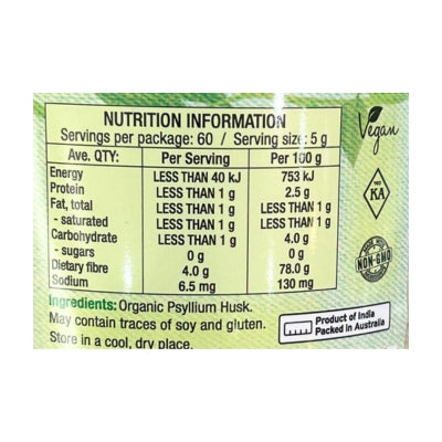 {"id":9486849311016,"title":"Chefs Choice Organic Psyllium Husk 250g","handle":"chefs-choice-organic-psyllium-husk-300g","description":"\u003cp\u003e \u003c\/p\u003e\n\u003ch5\u003eReviews\u003c\/h5\u003e\n\u003cp\u003eReviews go here\u003c\/p\u003e\n\u003ch5\u003eIngredients\u003c\/h5\u003e\n\u003cp\u003eAny images, tags, filters, product categories, and any other information on this website showing ingredients, nutrition panels, or allergy statements are for guidance only, as manufacturers often change their formulations without notice. Please contact the manufacturer for the most up-to-date ingredient information, or email us to confirm the ingredients of the stock currently on hand.\u003c\/p\u003e","published_at":"2025-11-19T11:22:41+11:00","created_at":"2024-11-07T14:34:46+11:00","vendor":"Chef's Choice","type":"General","tags":["Health Food","Sydney Store"],"price":1086,"price_min":1086,"price_max":1086,"available":true,"price_varies":false,"compare_at_price":null,"compare_at_price_min":0,"compare_at_price_max":0,"compare_at_price_varies":false,"variants":[{"id":49486888042792,"title":"Default Title","option1":"Default Title","option2":null,"option3":null,"sku":"9339337007408","requires_shipping":true,"taxable":false,"featured_image":null,"available":true,"name":"Chefs Choice Organic Psyllium Husk 250g","public_title":null,"options":["Default Title"],"price":1086,"weight":0,"compare_at_price":null,"inventory_quantity":2,"inventory_management":"shopify","inventory_policy":"deny","barcode":null,"requires_selling_plan":false,"selling_plan_allocations":[]}],"images":["\/\/crueltyfreeshop.myshopify.com\/cdn\/shop\/files\/Certified-Organic-Psyllium-Husk.jpg?v=1730950487","\/\/crueltyfreeshop.myshopify.com\/cdn\/shop\/files\/chef_schoicepsylliumhusk-NutritionalInformation.jpg?v=1764558394"],"featured_image":"\/\/crueltyfreeshop.myshopify.com\/cdn\/shop\/files\/Certified-Organic-Psyllium-Husk.jpg?v=1730950487","options":["Title"],"media":[{"alt":null,"id":40433613570344,"position":1,"preview_image":{"aspect_ratio":1.0,"height":800,"width":800,"src":"\/\/crueltyfreeshop.myshopify.com\/cdn\/shop\/files\/Certified-Organic-Psyllium-Husk.jpg?v=1730950487"},"aspect_ratio":1.0,"height":800,"media_type":"image","src":"\/\/crueltyfreeshop.myshopify.com\/cdn\/shop\/files\/Certified-Organic-Psyllium-Husk.jpg?v=1730950487","width":800},{"alt":null,"id":43112466415912,"position":2,"preview_image":{"aspect_ratio":1.0,"height":400,"width":400,"src":"\/\/crueltyfreeshop.myshopify.com\/cdn\/shop\/files\/chef_schoicepsylliumhusk-NutritionalInformation.jpg?v=1764558394"},"aspect_ratio":1.0,"height":400,"media_type":"image","src":"\/\/crueltyfreeshop.myshopify.com\/cdn\/shop\/files\/chef_schoicepsylliumhusk-NutritionalInformation.jpg?v=1764558394","width":400}],"requires_selling_plan":false,"selling_plan_groups":[],"content":"\u003cp\u003e \u003c\/p\u003e\n\u003ch5\u003eReviews\u003c\/h5\u003e\n\u003cp\u003eReviews go here\u003c\/p\u003e\n\u003ch5\u003eIngredients\u003c\/h5\u003e\n\u003cp\u003eAny images, tags, filters, product categories, and any other information on this website showing ingredients, nutrition panels, or allergy statements are for guidance only, as manufacturers often change their formulations without notice. Please contact the manufacturer for the most up-to-date ingredient information, or email us to confirm the ingredients of the stock currently on hand.\u003c\/p\u003e"}