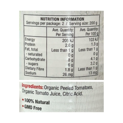{"id":9486852784424,"title":"Chefs Choice Organic Tomatoes - Whole \u0026 Peeled Canned 400g","handle":"chefs-choice-organic-tomatoes-whole-peeled-canned-400g","description":"\u003cp\u003e \u003c\/p\u003e\n\u003ch5\u003eReviews\u003c\/h5\u003e\n\u003cp\u003eReviews go here\u003c\/p\u003e\n\u003ch5\u003eIngredients\u003c\/h5\u003e\n\u003cp\u003eAny images, tags, filters, product categories, and any other information on this website showing ingredients, nutrition panels, or allergy statements are for guidance only, as manufacturers often change their formulations without notice. Please contact the manufacturer for the most up-to-date ingredient information, or email us to confirm the ingredients of the stock currently on hand.\u003c\/p\u003e","published_at":"2025-07-16T15:02:18+10:00","created_at":"2024-11-07T14:49:41+11:00","vendor":"Chef's Choice","type":"General","tags":["Cooking Sauces","Sydney Store"],"price":286,"price_min":286,"price_max":286,"available":true,"price_varies":false,"compare_at_price":null,"compare_at_price_min":0,"compare_at_price_max":0,"compare_at_price_varies":false,"variants":[{"id":49486909341992,"title":"Default Title","option1":"Default Title","option2":null,"option3":null,"sku":"9339337004711","requires_shipping":true,"taxable":false,"featured_image":null,"available":true,"name":"Chefs Choice Organic Tomatoes - Whole \u0026 Peeled Canned 400g","public_title":null,"options":["Default Title"],"price":286,"weight":0,"compare_at_price":null,"inventory_quantity":4,"inventory_management":"shopify","inventory_policy":"deny","barcode":null,"requires_selling_plan":false,"selling_plan_allocations":[]}],"images":["\/\/crueltyfreeshop.myshopify.com\/cdn\/shop\/files\/Certified-Organic-Whole-Peeled-Tomatoes-400g.jpg?v=1730951381","\/\/crueltyfreeshop.myshopify.com\/cdn\/shop\/files\/Chef_sChoiceWholeTomatoes-NutritionalInformation.jpg?v=1764811308"],"featured_image":"\/\/crueltyfreeshop.myshopify.com\/cdn\/shop\/files\/Certified-Organic-Whole-Peeled-Tomatoes-400g.jpg?v=1730951381","options":["Title"],"media":[{"alt":null,"id":40433649811752,"position":1,"preview_image":{"aspect_ratio":1.0,"height":800,"width":800,"src":"\/\/crueltyfreeshop.myshopify.com\/cdn\/shop\/files\/Certified-Organic-Whole-Peeled-Tomatoes-400g.jpg?v=1730951381"},"aspect_ratio":1.0,"height":800,"media_type":"image","src":"\/\/crueltyfreeshop.myshopify.com\/cdn\/shop\/files\/Certified-Organic-Whole-Peeled-Tomatoes-400g.jpg?v=1730951381","width":800},{"alt":null,"id":43127189864744,"position":2,"preview_image":{"aspect_ratio":1.0,"height":400,"width":400,"src":"\/\/crueltyfreeshop.myshopify.com\/cdn\/shop\/files\/Chef_sChoiceWholeTomatoes-NutritionalInformation.jpg?v=1764811308"},"aspect_ratio":1.0,"height":400,"media_type":"image","src":"\/\/crueltyfreeshop.myshopify.com\/cdn\/shop\/files\/Chef_sChoiceWholeTomatoes-NutritionalInformation.jpg?v=1764811308","width":400}],"requires_selling_plan":false,"selling_plan_groups":[],"content":"\u003cp\u003e \u003c\/p\u003e\n\u003ch5\u003eReviews\u003c\/h5\u003e\n\u003cp\u003eReviews go here\u003c\/p\u003e\n\u003ch5\u003eIngredients\u003c\/h5\u003e\n\u003cp\u003eAny images, tags, filters, product categories, and any other information on this website showing ingredients, nutrition panels, or allergy statements are for guidance only, as manufacturers often change their formulations without notice. Please contact the manufacturer for the most up-to-date ingredient information, or email us to confirm the ingredients of the stock currently on hand.\u003c\/p\u003e"}