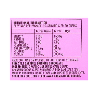 Grounded Pleasures Drinking Chocolate Pink Salt Caramel 200g