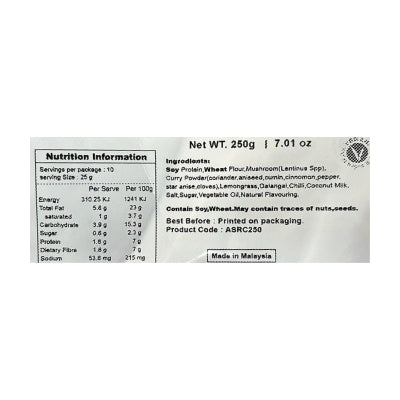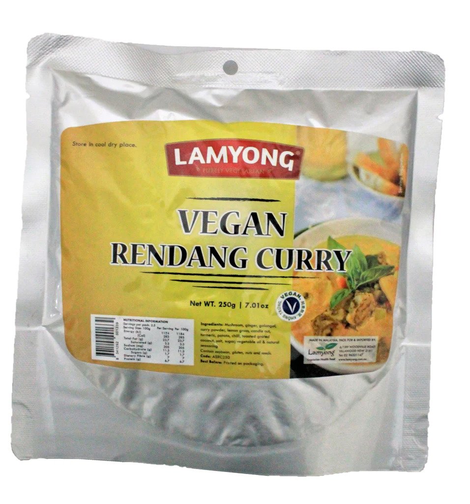 {"id":258084405274,"title":"Lamyong Vegan Rendang Curry 250g (cold)","handle":"lamyong-rendang-curry-250g","description":"\u003cp\u003eThis is a delicious, spicy mock meat curry that you can simply heat, with a little water, and serve with steamed rice. Please note that rendang is quite a hot curry so if you find it too spicy you can make it milder by adding more vegetables and coconut milk or a can of chopped tomatoes.\u003c\/p\u003e\n\u003c!-- TABS --\u003e\n\u003ch5\u003eReviews\u003c\/h5\u003e\n\u003cp\u003eReviews go here\u003c\/p\u003e\n\u003ch5\u003eIngredients\u003c\/h5\u003e\n\u003cp\u003eAny images, tags, filters, product categories, and any other information on this website showing ingredients, nutrition panels, or allergy statements are for guidance only, as manufacturers often change their formulations without notice. Please contact the manufacturer for the most up-to-date ingredient information, or email us to confirm the ingredients of the stock currently on hand.\u003c\/p\u003e\n\u003ch5\u003eImportant Shipping Note\u003c\/h5\u003e\n\u003cdiv\u003e\n\u003cspan\u003eAll orders containing chilled products, frozen products and chocolates must include a Cooler to protect them in transit. The\u003c\/span\u003e\u003cspan\u003e \u003c\/span\u003e\u003cspan\u003eCooler\u003c\/span\u003e\u003cspan\u003e will automatically add to your order when a cold product is added to your shopping cart. \u003c\/span\u003e\u003cspan\u003eFrozen items may defrost in transit, we can not recommend re-freezing. \u003c\/span\u003e\u003cspan\u003eWe will select the correct size cooler for your order. Chilled orders can only be sent to certain areas, please refer to our \u003c\/span\u003e\u003ca href=\"https:\/\/www.crueltyfreeshop.com.au\/pages\/faq#refrid\" rel=\"noopener\" target=\"_blank\" data-saferedirecturl=\"https:\/\/www.google.com\/url?q=https:\/\/www.crueltyfreeshop.com.au\/pages\/faq%23refrid\u0026amp;source=gmail\u0026amp;ust=1664430462005000\u0026amp;usg=AOvVaw3YpBIvhTwoxQRA_PVqbP_L\"\u003eFAQ\u003c\/a\u003e\u003cspan\u003e or email us at \u003c\/span\u003e\u003ca href=\"mailto:online@vegangrocerystore.com.au\" rel=\"noopener\" target=\"_blank\"\u003eonline@vegangrocerystore.\u003cwbr\u003ecom.au\u003c\/wbr\u003e\u003c\/a\u003e\n\u003c\/div\u003e\n\u003c!-- \/TABS --\u003e","published_at":"2023-03-29T11:54:31+11:00","created_at":"2018-01-05T14:27:55+11:00","vendor":"Lamyong","type":"Food (GST Free)","tags":["Beef","Chicken","Cooking Sauces","Sydney Store"],"price":690,"price_min":690,"price_max":690,"available":true,"price_varies":false,"compare_at_price":null,"compare_at_price_min":0,"compare_at_price_max":0,"compare_at_price_varies":false,"variants":[{"id":3374852669466,"title":"Default Title","option1":"Default Title","option2":null,"option3":null,"sku":"9341292002299","requires_shipping":true,"taxable":false,"featured_image":null,"available":true,"name":"Lamyong Vegan Rendang Curry 250g (cold)","public_title":null,"options":["Default Title"],"price":690,"weight":250,"compare_at_price":null,"inventory_quantity":6,"inventory_management":"shopify","inventory_policy":"deny","barcode":"","requires_selling_plan":false,"selling_plan_allocations":[]}],"images":["\/\/crueltyfreeshop.myshopify.com\/cdn\/shop\/files\/ezgif.com-webp-to-jpg_b11603af-bfbf-4f66-8fd6-26d212c6826a.jpg?v=1695186163","\/\/crueltyfreeshop.myshopify.com\/cdn\/shop\/files\/RendangCurry-NutritionalInformation.jpg?v=1764731198"],"featured_image":"\/\/crueltyfreeshop.myshopify.com\/cdn\/shop\/files\/ezgif.com-webp-to-jpg_b11603af-bfbf-4f66-8fd6-26d212c6826a.jpg?v=1695186163","options":["Title"],"media":[{"alt":null,"id":36362680467752,"position":1,"preview_image":{"aspect_ratio":0.934,"height":1024,"width":956,"src":"\/\/crueltyfreeshop.myshopify.com\/cdn\/shop\/files\/ezgif.com-webp-to-jpg_b11603af-bfbf-4f66-8fd6-26d212c6826a.jpg?v=1695186163"},"aspect_ratio":0.934,"height":1024,"media_type":"image","src":"\/\/crueltyfreeshop.myshopify.com\/cdn\/shop\/files\/ezgif.com-webp-to-jpg_b11603af-bfbf-4f66-8fd6-26d212c6826a.jpg?v=1695186163","width":956},{"alt":null,"id":43121821057320,"position":2,"preview_image":{"aspect_ratio":1.0,"height":400,"width":400,"src":"\/\/crueltyfreeshop.myshopify.com\/cdn\/shop\/files\/RendangCurry-NutritionalInformation.jpg?v=1764731198"},"aspect_ratio":1.0,"height":400,"media_type":"image","src":"\/\/crueltyfreeshop.myshopify.com\/cdn\/shop\/files\/RendangCurry-NutritionalInformation.jpg?v=1764731198","width":400}],"requires_selling_plan":false,"selling_plan_groups":[],"content":"\u003cp\u003eThis is a delicious, spicy mock meat curry that you can simply heat, with a little water, and serve with steamed rice. Please note that rendang is quite a hot curry so if you find it too spicy you can make it milder by adding more vegetables and coconut milk or a can of chopped tomatoes.\u003c\/p\u003e\n\u003c!-- TABS --\u003e\n\u003ch5\u003eReviews\u003c\/h5\u003e\n\u003cp\u003eReviews go here\u003c\/p\u003e\n\u003ch5\u003eIngredients\u003c\/h5\u003e\n\u003cp\u003eAny images, tags, filters, product categories, and any other information on this website showing ingredients, nutrition panels, or allergy statements are for guidance only, as manufacturers often change their formulations without notice. Please contact the manufacturer for the most up-to-date ingredient information, or email us to confirm the ingredients of the stock currently on hand.\u003c\/p\u003e\n\u003ch5\u003eImportant Shipping Note\u003c\/h5\u003e\n\u003cdiv\u003e\n\u003cspan\u003eAll orders containing chilled products, frozen products and chocolates must include a Cooler to protect them in transit. The\u003c\/span\u003e\u003cspan\u003e \u003c\/span\u003e\u003cspan\u003eCooler\u003c\/span\u003e\u003cspan\u003e will automatically add to your order when a cold product is added to your shopping cart. \u003c\/span\u003e\u003cspan\u003eFrozen items may defrost in transit, we can not recommend re-freezing. \u003c\/span\u003e\u003cspan\u003eWe will 
