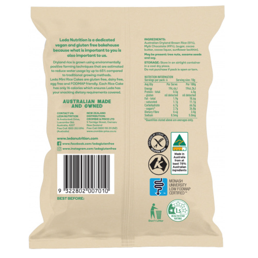 Leda GF Mini Rice Cakes - Mylk Chocolate 60g
