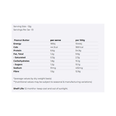 {"id":10011434680616,"title":"Macro Mike Powdered Peanut Butter - Sweet Original 156g","handle":"macromikepowderedpeanutbutter-sweetoriginal180g-case-1","description":"\u003cp\u003e\u003cstrong\u003e\u003c\/strong\u003e\u003cspan style=\"color: #333333; font-family: Arial, Helvetica, sans-serif; font-size: 14px; font-weight: bold;\"\u003e\u003c\/span\u003eOur PB+ is a must have for all the Peanut Butter addicts out there. PB+ is high in protein, low in fat, and comes in a range of delicious flavours. Our Original flavour combines the highest quality of plant powered protein with our signature roasted peanut flour. \u003c\/p\u003e\n\u003cp\u003eIf you love all things nutty, look no further, our Original PB+ is the perfect addition to all your favourite Macro Mike goodies. Add it to protein shakes, smoothie bowls, pancakes, waffles, granola and everything in-between. The possibilities are endless!\u003c\/p\u003e\n\u003cp\u003eTo make your PB+ simply add 1 serving to 20-25mls of water, and stir until desired consistency!\u003c\/p\u003e\n\u003cp\u003ePer 12g serving – 49 cal, 2.2 carbs, 6.3g protein, 1.2g fat.\u003c\/p\u003e\n\u003c!-- TABS --\u003e\n\u003ch5\u003eReviews\u003c\/h5\u003e\n\u003cp\u003eReviews go here\u003c\/p\u003e\n\u003ch5\u003eIngredients\u003c\/h5\u003e\n\u003cp\u003eAny images, tags, filters, product categories, and any other information on this website showing ingredients, nutrition panels, or allergy statements are for guidance only, as manufacturers often change their formulations without notice. Please contact the manufacturer for the most up-to-date ingredient information, or email us to confirm the ingredients of the stock currently on hand.\u003c\/p\u003e\n\u003c!-- \/TABS --\u003e","published_at":"2025-11-25T19:05:02+11:00","created_at":"2025-11-25T19:05:01+11:00","vendor":"Macro Mike","type":"Food (GST Free)","tags":["Protein Powders","Sydney Store"],"price":1495,"price_min":1495,"price_max":1495,"available":true,"price_varies":false,"compare_at_price":null,"compare_at_price_min":0,"compare_at_price_max":0,"compare_at_price_varies":false,"variants":[{"id":51091362578728,"title":"Default Title","option1":"Default Title","option2":null,"option3":null,"sku":"757953905929","requires_shipping":true,"taxable":false,"featured_image":null,"available":true,"name":"Macro Mike Powdered Peanut Butter - Sweet Original 156g","public_title":null,"options":["Default Title"],"price":1495,"weight":0,"compare_at_price":null,"inventory_quantity":6,"inventory_management":"shopify","inventory_policy":"deny","barcode":null,"requires_selling_plan":false,"selling_plan_allocations":[]}],"images":["\/\/crueltyfreeshop.myshopify.com\/cdn\/shop\/files\/86822a83baee0b4383031324837e6dd31bbc9d1f.jpg?v=1764057904","\/\/crueltyfreeshop.myshopify.com\/cdn\/shop\/files\/MacroMikepeanutbutter-NutritionalInfo.jpg?v=1764133419","\/\/crueltyfreeshop.myshopify.com\/cdn\/shop\/files\/MacroMikepeanutbutter-Ingredients.jpg?v=1764133419"],"featured_image":"\/\/crueltyfreeshop.myshopify.com\/cdn\/shop\/files\/86822a83baee0b4383031324837e6dd31bbc9d1f.jpg?v=1764057904","options":["Title"],"media":[{"alt":null,"id":43065900826920,"position":1,"preview_image":{"aspect_ratio":1.0,"height":1024,"width":1024,"src":"\/\/crueltyfreeshop.myshopify.com\/cdn\/shop\/files\/86822a83baee0b4383031324837e6dd31bbc9d1f.jpg?v=1764057904"},"aspect_ratio":1.0,"height":1024,"media_type":"image","src":"\/\/crueltyfreeshop.myshopify.com\/cdn\/shop\/files\/86822a83baee0b4383031324837e6dd31bbc9d1f.jpg?v=1764057904","width":1024},{"alt":null,"id":43078633783592,"position":2,"preview_image":{"aspect_ratio":1.0,"height":400,"width":400,"src":"\/\/crueltyfreeshop.myshopify.com\/cdn\/shop\/files\/MacroMikepeanutbutter-NutritionalInfo.jpg?v=1764133419"},"aspect_ratio":1.0,"height":400,"media_type":"image","src":"\/\/crueltyfreeshop.myshopify.com\/cdn\/shop\/files\/MacroMikepeanutbutter-NutritionalInfo.jpg?v=1764133419","width":400},{"alt":null,"id":43078633816360,"position":3,"preview_image":{"aspect_ratio":1.0,"height":400,"width":400,"src":"\/\/crueltyfreeshop.myshopify.com\/cdn\/shop\/files\/MacroMikepeanutbutter-Ingredients.jpg?v=1764133419"},"aspect_ratio":1.0,"height":400,"media_type":"image","src":"\/\/crueltyfreeshop.myshopify.com\/cdn\/shop\/files\/MacroMikepeanutbutter-Ingredients.jpg?v=1764133419","width":400}],"requires_selling_plan":false,"selling_plan_groups":[],"content":"\u003cp\u003e\u003cstrong\u003e\u003c\/strong\u003e\u003cspan style=\"color: #333333; font-family: Arial, Helvetica, sans-serif; font-size: 14px; font-weight: bold;\"\u003e\u003c\/span\u003eOur PB+ is a must have for all the Peanut Butter addicts out there. PB+ is high in protein, low in fat, and comes in a range of delicious flavours. Our Original flavour combines the highest quality of plant powered protein with our signature roasted peanut flour. \u003c\/p\u003e\n\u003cp\u003eIf you love all things nutty, look no further, our Original PB+ is the perfect addition to all your favourite Macro Mike goodies. Add it to protein shakes, smoothie bowls, pancakes, waffles, granola and everything in-between. The possibilities are endless!\u003c\/p\u003e\n\u003cp\u003eTo make your PB+ simply add 1 serving to 20-25mls of water, and stir until desired consistency!\u003c\/p\u003e\n\u003cp\u003ePer 12g serving – 49 cal, 2.2 carbs, 6.3g protein, 1.2g fat.\u003c\/p\u003e\n\u003c!-- TABS --\u003e\n\u003ch5\u003eReviews\u003c\/h5\u003e\n\u003cp\u003eReviews go here\u003c\/p\u003e\n\u003ch5\u003eIngredients\u003c\/h5\u003e\n\u003cp\u003eAny images, tags, filters, product categories, and any other information on this website showing ingredients, nutrition panels, or allergy statements are for guidance only, as manufacturers often change their formulations without notice. Please contact the manufacturer for the most up-to-date ingredient information, or email us to confirm the ingredients of the stock currently on hand.\u003c\/p\u003e\n\u003c!-- \/TABS --\u003e"}