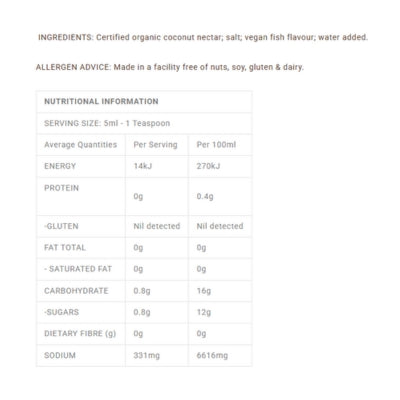 {"id":1457485905972,"title":"Niulife Coconut Fysh Sauce 250ml","handle":"niulifecoconutfyshsauce250ml-case-6","description":"\u003cp\u003eA delicious fish-free, plant-based sauce handmade from fermented coconut blossom nectar. Vegan \u0026amp; FODMAP friendly.\u003c\/p\u003e\n\u003cp\u003eThis plant-powered seasoning sauce is a deliciously healthy vegan alternative to fish sauce. Handmade from barrel-aged fermented coconut blossom nectar, it supports the empowerment of women living in remote coastal villages.\u003c\/p\u003e\n\u003cp\u003eIdeal for crispy noodle salads, stir-fries, marinades, kimchi or any dish that calls for fish sauce.\u003c\/p\u003e\n\u003cp\u003e100% of profits from all Niulife products go towards running our DME® VillageForLife™ empowerment programs. These equip small communities living in remote villages with everything they need to set up their own independent, sustainable \u0026amp; vibrant local economy. Thanks to you, they now have the power to enjoy a richer, fairer quality of life. \u003c\/p\u003e\n\u003ch5\u003eReviews\u003c\/h5\u003e\n\u003cp\u003eReviews go here\u003c\/p\u003e\n\u003ch5\u003eIngredients\u003c\/h5\u003e\n\u003cp\u003eAny images, tags, filters, product categories, and any other information on this website showing ingredients, nutrition panels, or allergy statements are for guidance only, as manufacturers often change their formulations without notice. Please contact the manufacturer for the most up-to-date ingredient information, or email us to confirm the ingredients of the stock currently on hand.\u003c\/p\u003e\n\u003c!-- \/TABS --\u003e","published_at":"2024-12-09T10:46:27+11:00","created_at":"2018-10-19T10:27:33+11:00","vendor":"Niulife","type":"Food (GST Free)","tags":["Savoury Sauces","Sydney Store"],"price":1075,"price_min":1075,"price_max":1075,"available":true,"price_varies":false,"compare_at_price":null,"compare_at_price_min":0,"compare_at_price_max":0,"compare_at_price_varies":false,"variants":[{"id":13353448308788,"title":"Default Title","option1":"Default Title","option2":null,"option3":null,"sku":"9336318001707","requires_shipping":true,"taxable":false,"featured_image":null,"available":true,"name":"Niulife Coconut Fysh Sauce 250ml","public_title":null,"options":["Default Title"],"price":1075,"weight":250,"compare_at_price":null,"inventory_quantity":22,"inventory_management":"shopify","inventory_policy":"deny","barcode":"","requires_selling_plan":false,"selling_plan_allocations":[]}],"images":["\/\/crueltyfreeshop.myshopify.com\/cdn\/shop\/products\/b0ff1bd630cbacf0d85a027cd38b563a42f856e3.png?v=1539905253","\/\/crueltyfreeshop.myshopify.com\/cdn\/shop\/files\/NiulifeFyshSauce-NutritionalInformation.jpg?v=1764736398"],"featured_image":"\/\/crueltyfreeshop.myshopify.com\/cdn\/shop\/products\/b0ff1bd630cbacf0d85a027cd38b563a42f856e3.png?v=1539905253","options":["Title"],"media":[{"alt":null,"id":2993662623881,"position":1,"preview_image":{"aspect_ratio":1.0,"height":500,"width":500,"src":"\/\/crueltyfreeshop.myshopify.com\/cdn\/shop\/products\/b0ff1bd630cbacf0d85a027cd38b563a42f856e3.png?v=1539905253"},"aspect_ratio":1.0,"height":500,"media_type":"image","src":"\/\/crueltyfreeshop.myshopify.com\/cdn\/shop\/products\/b0ff1bd630cbacf0d85a027cd38b563a42f856e3.png?v=1539905253","width":500},{"alt":null,"id":43122399084840,"position":2,"preview_image":{"aspect_ratio":1.0,"height":400,"width":400,"src":"\/\/crueltyfreeshop.myshopify.com\/cdn\/shop\/files\/NiulifeFyshSauce-NutritionalInformation.jpg?v=1764736398"},"aspect_ratio":1.0,"height":400,"media_type":"image","src":"\/\/crueltyfreeshop.myshopify.com\/cdn\/shop\/files\/NiulifeFyshSauce-NutritionalInformation.jpg?v=1764736398","width":400}],"requires_selling_plan":false,"selling_plan_groups":[],"content":"\u003cp\u003eA delicious fish-free, plant-based sauce handmade from fermented coconut blossom nectar. Vegan \u0026amp; FODMAP friendly.\u003c\/p\u003e\n\u003cp\u003eThis plant-powered seasoning sauce is a deliciously healthy vegan alternative to fish sauce. Handmade from barrel-aged fermented coconut blossom nectar, it supports the empowerment of women living in remote coastal villages.\u003c\/p\u003e\n\u003cp\u003eIdeal for crispy noodle salads, stir-fries, marinades, kimchi or any dish that calls for fish sauce.\u003c\/p\u003e\n\u003cp\u003e100% of profits from all Niulife products go towards running our DME® VillageForLife™ empowerment programs. These equip small communities living in remote villages with everything they need to set up their own independent, sustainable \u0026amp; vibrant local economy. Thanks to you, they now have the power to enjoy a richer, fairer quality of life. \u003c\/p\u003e\n\u003ch5\u003eReviews\u003c\/h5\u003e\n\u003cp\u003eReviews go here\u003c\/p\u003e\n\u003ch5\u003eIngredients\u003c\/h5\u003e\n\u003cp\u003eAny images, tags, filters, product categories, and any other information on this website showing ingredients, nutrition panels, or allergy statements are for guidance only, as manufacturers often change their formulations without notice. Please contact the manufacturer for the most up-to-date ingredient information, or email us to confirm the ingredients of the stock currently on hand.\u003c\/p\u003e\n\u003c!-- \/TABS --\u003e"}