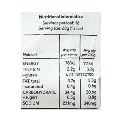 {"id":9726992384296,"title":"Nonie's GF Light Golden Bread 1.1kg (cold)","handle":"nonies-gf-light-golden-bread-11kg","description":"\u003cp\u003e \u003c\/p\u003e\n\u003ch5\u003eReviews\u003c\/h5\u003e\n\u003cp\u003eReviews go here\u003c\/p\u003e\n\u003ch5\u003eIngredients\u003c\/h5\u003e\n\u003cp\u003eAny images, tags, filters, product categories, and any other information on this website showing ingredients, nutrition panels, or allergy statements are for guidance only, as manufacturers often change their formulations without notice. Please contact the manufacturer for the most up-to-date ingredient information, or email us to confirm the ingredients of the stock currently on hand.\u003c\/p\u003e\n\u003ch5\u003eImportant Shipping Note\u003c\/h5\u003e\n\u003cdiv\u003e\n\u003cspan\u003eAll orders containing chilled products, frozen products and chocolates must include a Cooler to protect them in transit. The\u003c\/span\u003e\u003cspan\u003e \u003c\/span\u003e\u003cspan\u003eCooler\u003c\/span\u003e\u003cspan\u003e will automatically add to your order when a cold product is added to your shopping cart. \u003c\/span\u003e\u003cspan\u003eFrozen items may defrost in transit, we can not recommend re-freezing. \u003c\/span\u003e\u003cspan\u003eWe will select the correct size cooler for your order. Chilled orders can only be sent to certain areas, please refer to our \u003c\/span\u003e\u003ca href=\"https:\/\/www.crueltyfreeshop.com.au\/pages\/faq#refrid\" rel=\"noopener\" target=\"_blank\" data-saferedirecturl=\"https:\/\/www.google.com\/url?q=https:\/\/www.crueltyfreeshop.com.au\/pages\/faq%23refrid\u0026amp;source=gmail\u0026amp;ust=1664430462005000\u0026amp;usg=AOvVaw3YpBIvhTwoxQRA_PVqbP_L\"\u003eFAQ\u003c\/a\u003e\u003cspan\u003e or email us at \u003c\/span\u003e\u003ca href=\"mailto:online@vegangrocerystore.com.au\" rel=\"noopener\" target=\"_blank\"\u003eonline@vegangrocerystore.\u003cwbr\u003ecom.au\u003c\/wbr\u003e\u003c\/a\u003e\n\u003c\/div\u003e","published_at":"2025-08-05T12:41:38+10:00","created_at":"2025-08-05T12:41:38+10:00","vendor":"Nonie's","type":"","tags":["Bread","Sydney Store"],"price":1840,"price_min":1840,"price_max":1840,"available":true,"price_varies":false,"compare_at_price":null,"compare_at_price_min":0,"compare_at_price_max":0,"compare_at_price_varies":false,"variants":[{"id":50470885687592,"title":"Default Title","option1":"Default Title","option2":null,"option3":null,"sku":"9369998219827","requires_shipping":true,"taxable":false,"featured_image":null,"available":true,"name":"Nonie's GF Light Golden Bread 1.1kg (cold)","public_title":null,"options":["Default Title"],"price":1840,"weight":0,"compare_at_price":null,"inventory_quantity":1,"inventory_management":"shopify","inventory_policy":"deny","barcode":null,"requires_selling_plan":false,"selling_plan_allocations":[]}],"images":["\/\/crueltyfreeshop.myshopify.com\/cdn\/shop\/files\/Nonie-s-GF-Light-Golden-Bread.png?v=1754361701","\/\/crueltyfreeshop.myshopify.com\/cdn\/shop\/files\/nonieslightgolden-NutritionalInfo.jpg?v=1763611073","\/\/crueltyfreeshop.myshopify.com\/cdn\/shop\/files\/nonieslightgolden-ingredients.jpg?v=1763611073"],"featured_image":"\/\/crueltyfreeshop.myshopify.com\/cdn\/shop\/files\/Nonie-s-GF-Light-Golden-Bread.png?v=1754361701","options":["Title"],"media":[{"alt":null,"id":42051149267240,"position":1,"preview_image":{"aspect_ratio":1.0,"height":512,"width":512,"src":"\/\/crueltyfreeshop.myshopify.com\/cdn\/shop\/files\/Nonie-s-GF-Light-Golden-Bread.png?v=1754361701"},"aspect_ratio":1.0,"height":512,"media_type":"image","src":"\/\/crueltyfreeshop.myshopify.com\/cdn\/shop\/files\/Nonie-s-GF-Light-Golden-Bread.png?v=1754361701","width":512},{"alt":null,"id":43015583007016,"position":2,"preview_image":{"aspect_ratio":1.0,"height":400,"width":400,"src":"\/\/crueltyfreeshop.myshopify.com\/cdn\/shop\/files\/nonieslightgolden-NutritionalInfo.jpg?v=1763611073"},"aspect_ratio":1.0,"height":400,"media_type":"image","src":"\/\/crueltyfreeshop.myshopify.com\/cdn\/shop\/files\/nonieslightgolden-NutritionalInfo.jpg?v=1763611073","width":400},{"alt":null,"id":43015583039784,"position":3,"preview_image":{"aspect_ratio":1.0,"height":400,"width":400,"src":"\/\/crueltyfreeshop.myshopify.com\/cdn\/shop\/files\/nonieslightgolden-ingredients.jpg?v=1763611073"},"aspect_ratio":1.0,"height":400,"media_type":"image","src":"\/\/crueltyfreeshop.myshopify.com\/cdn\/shop\/files\/nonieslightgolden-ingredients.jpg?v=1763611073","width":400}],"requires_selling_plan":false,"selling_plan_groups":[],"content":"\u003cp\u003e \u003c\/p\u003e\n\u003ch5\u003eReviews\u003c\/h5\u003e\n\u003cp\u003eReviews go here\u003c\/p\u003e\n\u003ch5\u003eIngredients\u003c\/h5\u003e\n\u003cp\u003eAny images, tags, filters, product categories, and any other information on this website showing ingredients, nutrition panels, or allergy statements are for guidance only, as manufacturers often change their formulations without notice. Please contact the manufacturer for the most up-to-date ingredient information, or email us to confirm the ingredients of the stock currently on hand.\u003c\/p\u003e\n\u003ch5\u003eImportant Shipping Note\u003c\/h5\u003e\n\u003cdiv\u003e\n\u003cspan\u003eAll orders containing chilled products, frozen products and chocolates must include a Cooler to protect them in transit. The\u003c\/span\u003e\u003cspan\u003e \u003c\/span\u003e\u003cspan\u003eCooler\u003c\/span\u003e\u003cspan\u003e will automatically add to your order when a cold product is added to your shopping cart. \u003c\/span\u003e\u003cspan\u003eFrozen items may defrost in transit, we can not recommend re-freezing. \u003c\/span\u003e\u003cspan\u003eWe will select the correct size cooler for your order. Chilled orders can only be sent to certain areas, please refer to our \u003c\/span\u003e\u003ca href=\"https:\/\/www.crueltyfreeshop.com.au\/pages\/faq#refrid\" rel=\"noopener\" target=\"_blank\" data-saferedirecturl=\"https:\/\/www.google.com\/url?q=https:\/\/ww
