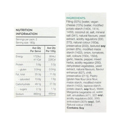 {"id":9428626309416,"title":"Pavillion Gluten Free Vegan Mince \u0026 Cheese Pies 360g (cold)","handle":"pavillion-gluten-free-vegan-mince-cheese-pies-360g","description":"\u003cp\u003e \u003c\/p\u003e\n\u003ch5\u003eReviews\u003c\/h5\u003e\n\u003cp\u003eReviews go here\u003c\/p\u003e\n\u003ch5\u003eIngredients\u003c\/h5\u003e\n\u003cp\u003eAny images, tags, filters, product categories, and any other information on this website showing ingredients, nutrition panels, or allergy statements are for guidance only, as manufacturers often change their formulations without notice. Please contact the manufacturer for the most up-to-date ingredient information, or email us to confirm the ingredients of the stock currently on hand.\u003c\/p\u003e","published_at":"2025-03-20T09:48:07+11:00","created_at":"2024-09-06T10:10:49+10:00","vendor":"Pavillion","type":"General","tags":["Pies","Sydney Store"],"price":1232,"price_min":1232,"price_max":1232,"available":false,"price_varies":false,"compare_at_price":null,"compare_at_price_min":0,"compare_at_price_max":0,"compare_at_price_varies":false,"variants":[{"id":49190287606056,"title":"Default Title","option1":"Default Title","option2":null,"option3":null,"sku":"9417808001060","requires_shipping":true,"taxable":true,"featured_image":null,"available":false,"name":"Pavillion Gluten Free Vegan Mince \u0026 Cheese Pies 360g (cold)","public_title":null,"options":["Default Title"],"price":1232,"weight":0,"compare_at_price":null,"inventory_quantity":-1,"inventory_management":"shopify","inventory_policy":"deny","barcode":null,"requires_selling_plan":false,"selling_plan_allocations":[]}],"images":["\/\/crueltyfreeshop.myshopify.com\/cdn\/shop\/files\/PVLN1030R.png?v=1725581449","\/\/crueltyfreeshop.myshopify.com\/cdn\/shop\/files\/pavillionmincecheesepies-NutritionalInfo.jpg?v=1763685943"],"featured_image":"\/\/crueltyfreeshop.myshopify.com\/cdn\/shop\/files\/PVLN1030R.png?v=1725581449","options":["Title"],"media":[{"alt":null,"id":39983980347688,"position":1,"preview_image":{"aspect_ratio":0.736,"height":696,"width":512,"src":"\/\/crueltyfreeshop.myshopify.com\/cdn\/shop\/files\/PVLN1030R.png?v=1725581449"},"aspect_ratio":0.736,"height":696,"media_type":"image","src":"\/\/crueltyfreeshop.myshopify.com\/cdn\/shop\/files\/PVLN1030R.png?v=1725581449","width":512},{"alt":null,"id":43020779094312,"position":2,"preview_image":{"aspect_ratio":1.0,"height":400,"width":400,"src":"\/\/crueltyfreeshop.myshopify.com\/cdn\/shop\/files\/pavillionmincecheesepies-NutritionalInfo.jpg?v=1763685943"},"aspect_ratio":1.0,"height":400,"media_type":"image","src":"\/\/crueltyfreeshop.myshopify.com\/cdn\/shop\/files\/pavillionmincecheesepies-NutritionalInfo.jpg?v=1763685943","width":400}],"requires_selling_plan":false,"selling_plan_groups":[],"content":"\u003cp\u003e \u003c\/p\u003e\n\u003ch5\u003eReviews\u003c\/h5\u003e\n\u003cp\u003eReviews go here\u003c\/p\u003e\n\u003ch5\u003eIngredients\u003c\/h5\u003e\n\u003cp\u003eAny images, tags, filters, product categories, and any other information on this website showing ingredients, nutrition panels, or allergy statements are for guidance only, as manufacturers often change their formulations without notice. Please contact the manufacturer for the most up-to-date ingredient information, or email us to confirm the ingredients of the stock currently on hand.\u003c\/p\u003e"}