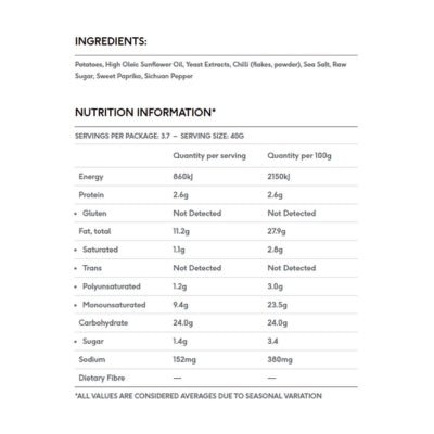 {"id":9848474665256,"title":"Proper Crisps Chilli Crisps 150g","handle":"proper-core-chilli-crisp-150g","description":"\u003cp\u003e \u003c\/p\u003e\n\u003ch5\u003eReviews\u003c\/h5\u003e\n\u003cp\u003eReviews go here\u003c\/p\u003e\n\u003ch5\u003eIngredients\u003c\/h5\u003e\n\u003cp\u003eAny images, tags, filters, product categories, and any other information on this website showing ingredients, nutrition panels, or allergy statements are for guidance only, as manufacturers often change their formulations without notice. Please contact the manufacturer for the most up-to-date ingredient information, or email us to confirm the ingredients of the stock currently on hand.\u003c\/p\u003e","published_at":"2025-10-13T13:27:16+11:00","created_at":"2025-10-13T13:27:15+11:00","vendor":"Proper Crisps","type":"","tags":["Crisps","Sydney Store"],"price":699,"price_min":699,"price_max":699,"available":true,"price_varies":false,"compare_at_price":null,"compare_at_price_min":0,"compare_at_price_max":0,"compare_at_price_varies":false,"variants":[{"id":50826274898216,"title":"Default Title","option1":"Default Title","option2":null,"option3":null,"sku":"9421906305111","requires_shipping":true,"taxable":true,"featured_image":null,"available":true,"name":"Proper Crisps Chilli Crisps 150g","public_title":null,"options":["Default Title"],"price":699,"weight":150,"compare_at_price":null,"inventory_quantity":1,"inventory_management":"shopify","inventory_policy":"deny","barcode":null,"requires_selling_plan":false,"selling_plan_allocations":[]}],"images":["\/\/crueltyfreeshop.myshopify.com\/cdn\/shop\/files\/ProperCrispsChilliCrisps150g.png?v=1764728498","\/\/crueltyfreeshop.myshopify.com\/cdn\/shop\/files\/ProperChilli-NutritionalInfo.jpg?v=1768344469"],"featured_image":"\/\/crueltyfreeshop.myshopify.com\/cdn\/shop\/files\/ProperCrispsChilliCrisps150g.png?v=1764728498","options":["Title"],"media":[{"alt":null,"id":43121738285352,"position":1,"preview_image":{"aspect_ratio":1.0,"height":800,"width":800,"src":"\/\/crueltyfreeshop.myshopify.com\/cdn\/shop\/files\/ProperCrispsChilliCrisps150g.png?v=1764728498"},"aspect_ratio":1.0,"height":800,"media_type":"image","src":"\/\/crueltyfreeshop.myshopify.com\/cdn\/shop\/files\/ProperCrispsChilliCrisps150g.png?v=1764728498","width":800},{"alt":null,"id":43302486933800,"position":2,"preview_image":{"aspect_ratio":1.0,"height":400,"width":400,"src":"\/\/crueltyfreeshop.myshopify.com\/cdn\/shop\/files\/ProperChilli-NutritionalInfo.jpg?v=1768344469"},"aspect_ratio":1.0,"height":400,"media_type":"image","src":"\/\/crueltyfreeshop.myshopify.com\/cdn\/shop\/files\/ProperChilli-NutritionalInfo.jpg?v=1768344469","width":400}],"requires_selling_plan":false,"selling_plan_groups":[],"content":"\u003cp\u003e \u003c\/p\u003e\n\u003ch5\u003eReviews\u003c\/h5\u003e\n\u003cp\u003eReviews go here\u003c\/p\u003e\n\u003ch5\u003eIngredients\u003c\/h5\u003e\n\u003cp\u003eAny images, tags, filters, product categories, and any other information on this website showing ingredients, nutrition panels, or allergy statements are for guidance only, as manufacturers often change their formulations without notice. Please contact the manufacturer for the most up-to-date ingredient information, or email us to confirm the ingredients of the stock currently on hand.\u003c\/p\u003e"}