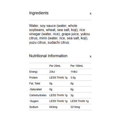 {"id":9486879326504,"title":"Spiral Foods Sauce - Ponzu Citrus 250ml","handle":"spiral-foods-sauce-ponzu-citrus-250ml","description":"\u003cp\u003e \u003c\/p\u003e\n\u003ch5\u003eReviews\u003c\/h5\u003e\n\u003cp\u003eReviews go here\u003c\/p\u003e\n\u003ch5\u003eIngredients\u003c\/h5\u003e\n\u003cp\u003eAny images, tags, filters, product categories, and any other information on this website showing ingredients, nutrition panels, or allergy statements are for guidance only, as manufacturers often change their formulations without notice. Please contact the manufacturer for the most up-to-date ingredient information, or email us to confirm the ingredients of the stock currently on hand.\u003c\/p\u003e","published_at":"2025-03-05T12:37:15+11:00","created_at":"2024-11-07T16:54:06+11:00","vendor":"Spiral Foods","type":"General","tags":["Dressings","Savoury Sauces","Sydney Store"],"price":753,"price_min":753,"price_max":753,"available":true,"price_varies":false,"compare_at_price":null,"compare_at_price_min":0,"compare_at_price_max":0,"compare_at_price_varies":false,"variants":[{"id":49487103656232,"title":"Default Title","option1":"Default Title","option2":null,"option3":null,"sku":"9312336010259","requires_shipping":true,"taxable":false,"featured_image":null,"available":true,"name":"Spiral Foods Sauce - Ponzu Citrus 250ml","public_title":null,"options":["Default Title"],"price":753,"weight":0,"compare_at_price":null,"inventory_quantity":2,"inventory_management":"shopify","inventory_policy":"deny","barcode":null,"requires_selling_plan":false,"selling_plan_allocations":[]}],"images":["\/\/crueltyfreeshop.myshopify.com\/cdn\/shop\/files\/Spiral_Citrus_Ponzu_250ml_2000x2000px.jpg?v=1730958846","\/\/crueltyfreeshop.myshopify.com\/cdn\/shop\/files\/SpiralCitrusPonzu-NutritionalInformation.png?v=1764552729"],"featured_image":"\/\/crueltyfreeshop.myshopify.com\/cdn\/shop\/files\/Spiral_Citrus_Ponzu_250ml_2000x2000px.jpg?v=1730958846","options":["Title"],"media":[{"alt":null,"id":40433972543784,"position":1,"preview_image":{"aspect_ratio":1.0,"height":2000,"width":2000,"src":"\/\/crueltyfreeshop.myshopify.com\/cdn\/shop\/files\/Spiral_Citrus_Ponzu_250ml_2000x2000px.jpg?v=1730958846"},"aspect_ratio":1.0,"height":2000,"media_type":"image","src":"\/\/crueltyfreeshop.myshopify.com\/cdn\/shop\/files\/Spiral_Citrus_Ponzu_250ml_2000x2000px.jpg?v=1730958846","width":2000},{"alt":null,"id":43112058028328,"position":2,"preview_image":{"aspect_ratio":1.0,"height":400,"width":400,"src":"\/\/crueltyfreeshop.myshopify.com\/cdn\/shop\/files\/SpiralCitrusPonzu-NutritionalInformation.png?v=1764552729"},"aspect_ratio":1.0,"height":400,"media_type":"image","src":"\/\/crueltyfreeshop.myshopify.com\/cdn\/shop\/files\/SpiralCitrusPonzu-NutritionalInformation.png?v=1764552729","width":400}],"requires_selling_plan":false,"selling_plan_groups":[],"content":"\u003cp\u003e \u003c\/p\u003e\n\u003ch5\u003eReviews\u003c\/h5\u003e\n\u003cp\u003eReviews go here\u003c\/p\u003e\n\u003ch5\u003eIngredients\u003c\/h5\u003e\n\u003cp\u003eAny images, tags, filters, product categories, and any other information on this website showing ingredients, nutrition panels, or allergy statements are for guidance only, as manufacturers often change their formulations without notice. Please contact the manufacturer for the most up-to-date ingredient information, or email us to confirm the ingredients of the stock currently on hand.\u003c\/p\u003e"}