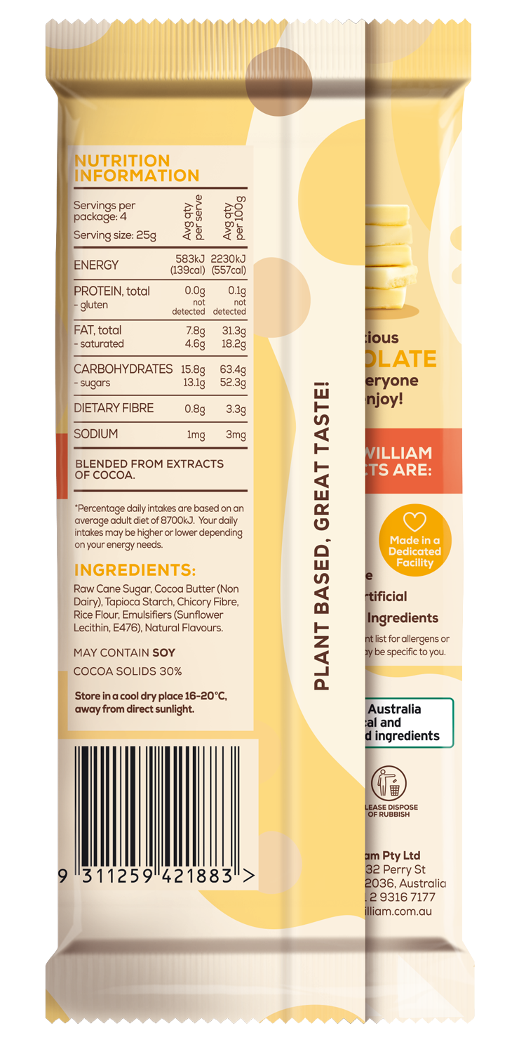 {"id":7568476274845,"title":"Sweet William White Chocolate Bar 100g (cold)","handle":"sweet-william-white-chocolate-100g","description":"\u003cp\u003eA sweet, creamy white chocolate experience, for that ‘cloud nine’ feeling.\u003c\/p\u003e\n\u003c!-- TABS --\u003e\n\u003ch5\u003eReviews\u003c\/h5\u003e\n\u003cp\u003eReviews go here\u003c\/p\u003e\n\u003ch5\u003eIngredients\u003c\/h5\u003e\n\u003cp\u003eAny images, tags, filters, product categories, and any other information on this website showing ingredients, nutrition panels, or allergy statements are for guidance only, as manufacturers often change their formulations without notice. Please contact the manufacturer for the most up-to-date ingredient information, or email us to confirm the ingredients of the stock currently on hand.\u003c\/p\u003e\n\u003ch5\u003eImportant Shipping Note\u003c\/h5\u003e\n\u003cdiv\u003e\n\u003cspan\u003eAll orders containing chilled products, frozen products and chocolates must include a Cooler to protect them in transit. The\u003c\/span\u003e\u003cspan\u003e \u003c\/span\u003e\u003cspan\u003eCooler\u003c\/span\u003e\u003cspan\u003e will automatically add to your order when a cold product is added to your shopping cart. \u003c\/span\u003e\u003cspan\u003eFrozen items may defrost in transit, we can not recommend re-freezing. \u003c\/span\u003e\u003cspan\u003eWe will select the correct size cooler for your order. Chilled orders can only be sent to certain areas, please refer to our \u003c\/span\u003e\u003ca href=\"https:\/\/www.crueltyfreeshop.com.au\/pages\/faq#refrid\" rel=\"noopener\" data-saferedirecturl=\"https:\/\/www.google.com\/url?q=https:\/\/www.crueltyfreeshop.com.au\/pages\/faq%23refrid\u0026amp;source=gmail\u0026amp;ust=1664430462005000\u0026amp;usg=AOvVaw3YpBIvhTwoxQRA_PVqbP_L\" target=\"_blank\"\u003eFAQ\u003c\/a\u003e\u003cspan\u003e or email us at \u003c\/span\u003e\u003ca href=\"mailto:online@vegangrocerystore.com.au\" rel=\"noopener\" target=\"_blank\"\u003eonline@vegangrocerystore.\u003cwbr\u003ecom.au\u003c\/wbr\u003e\u003c\/a\u003e\n\u003c\/div\u003e\n\u003c!-- \/TABS --\u003e","published_at":"2023-10-25T15:56:50+11:00","created_at":"2022-09-13T09:28:26+10:00","vendor":"Sweet William","type":"Food","tags":["Baking","Chocolate","Sydney Store"],"price":849,"price_min":849,"price_max":849,"available":false,"price_varies":false,"compare_at_price":null,"compare_at_price_min":0,"compare_at_price_max":0,"compare_at_price_varies":false,"variants":[{"id":42893381075101,"title":"Default Title","option1":"Default Title","option2":null,"option3":null,"sku":"9311259421883","requires_shipping":true,"taxable":true,"featured_image":null,"available":false,"name":"Sweet William White Chocolate Bar 100g (cold)","public_title":null,"options":["Default Title"],"price":849,"weight":100,"compare_at_price":null,"inventory_quantity":0,"inventory_management":"shopify","inventory_policy":"deny","barcode":"","requires_selling_plan":false,"selling_plan_allocations":[]}],"images":["\/\/crueltyfreeshop.myshopify.com\/cdn\/shop\/files\/SWLM1020R.jpg?v=1764736049","\/\/crueltyfreeshop.myshopify.com\/cdn\/shop\/files\/WhiteChocolate100gBack.png?v=1764736049"],"featured_image":"\/\/crueltyfreeshop.myshopify.com\/cdn\/shop\/files\/SWLM1020R.jpg?v=1764736049","options":["Title"],"media":[{"alt":null,"id":43122388205864,"position":1,"preview_image":{"aspect_ratio":1.0,"height":700,"width":700,"src":"\/\/crueltyfreeshop.myshopify.com\/cdn\/shop\/files\/SWLM1020R.jpg?v=1764736049"},"aspect_ratio":1.0,"height":700,"media_type":"image","src":"\/\/crueltyfreeshop.myshopify.com\/cdn\/shop\/files\/SWLM1020R.jpg?v=1764736049","width":700},{"alt":null,"id":37833232351528,"position":2,"preview_image":{"aspect_ratio":0.503,"height":1491,"width":750,"src":"\/\/crueltyfreeshop.myshopify.com\/cdn\/shop\/files\/WhiteChocolate100gBack.png?v=1764736049"},"aspect_ratio":0.503,"height":1491,"media_type":"image","src":"\/\/crueltyfreeshop.myshopify.com\/cdn\/shop\/files\/WhiteChocolate100gBack.png?v=1764736049","width":750}],"requires_selling_plan":false,"selling_plan_groups":[],"content":"\u003cp\u003eA sweet, creamy white chocolate experience, for that ‘cloud nine’ feeling.\u003c\/p\u003e\n\u003c!-- TABS --\u003e\n\u003ch5\u003eReviews\u003c\/h5\u003e\n\u003cp\u003eReviews go here\u003c\/p\u003e\n\u003ch5\u003eIngredients\u003c\/h5\u003e\n\u003cp\u003eAny images, tags, filters, product categories, and any other information on this website showing ingredients, nutrition panels, or allergy statements are for guidance only, as manufacturers often change their formulations without notice. Please contact the manufacturer for the most up-to-date ingredient information, or email us to confirm the ingredients of the stock currently on hand.\u003c\/p\u003e\n\u003ch5\u003eImportant Shipping Note\u003c\/h5\u003e\n\u003cdiv\u003e\n\u003cspan\u003eAll orders containing chilled products, frozen products and chocolates must include a Cooler to protect them in transit. The\u003c\/span\u003e\u003cspan\u003e \u003c\/span\u003e\u003cspan\u003eCooler\u003c\/span\u003e\u003cspan\u003e will automatically add to your order when a cold product is added to your shopping cart. \u003c\/span\u003e\u003cspan\u003eFrozen items may defrost in transit, we can not recommend re-freezing. \u003c\/span\u003e\u003cspan\u003eWe will select the correct size cooler for your order. Chilled orders can only be sent to certain areas, please refer to our \u003c\/span\u003e\u003ca href=\"https:\/\/www.crueltyfreeshop.com.au\/pages\/faq#refrid\" rel=\"noopener\" data-saferedirecturl=\"https:\/\/www.google.com\/url?q=https:\/\/www.crueltyfreeshop.com.au\/pages\/faq%23refrid\u0026amp;source=gmail\u0026amp;ust=1664430462005000\u0026amp;usg=AOvVaw3YpBIvhTwoxQRA_PVqbP_L\" target=\"_blank\"\u003eFAQ\u003c\/a\u003e\u003cspan\u003e or email us at \u003c\/span\u003e\u003ca href=\"mailto:online@vegangrocerystore.com.au\" rel=\"noopener\" target=\"_blank\"\u003eonline@vegangrocerystore.\u00