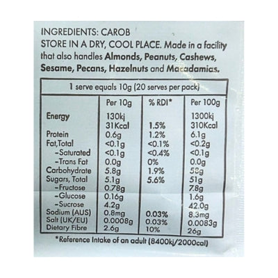 {"id":9848477974824,"title":"The Carob Kitchen Organic Carob Kibble Nibbles 200g","handle":"the-carob-kitchen-organic-carob-kibble-nibbles-200g","description":"\u003cp\u003e \u003c\/p\u003e\n\u003ch5\u003eReviews\u003c\/h5\u003e\n\u003cp\u003eReviews go here\u003c\/p\u003e\n\u003ch5\u003eIngredients\u003c\/h5\u003e\n\u003cp\u003eAny images, tags, filters, product categories, and any other information on this website showing ingredients, nutrition panels, or allergy statements are for guidance only, as manufacturers often change their formulations without notice. Please contact the manufacturer for the most up-to-date ingredient information, or email us to confirm the ingredients of the stock currently on hand.\u003c\/p\u003e","published_at":"2025-10-13T13:53:52+11:00","created_at":"2025-10-13T13:53:52+11:00","vendor":"The Carob Kitchen","type":"","tags":["Baking","Carob","Chocolate","Sydney Store"],"price":914,"price_min":914,"price_max":914,"available":true,"price_varies":false,"compare_at_price":null,"compare_at_price_min":0,"compare_at_price_max":0,"compare_at_price_varies":false,"variants":[{"id":50826291740968,"title":"Default Title","option1":"Default Title","option2":null,"option3":null,"sku":"793573283863","requires_shipping":true,"taxable":false,"featured_image":null,"available":true,"name":"The Carob Kitchen Organic Carob Kibble Nibbles 200g","public_title":null,"options":["Default Title"],"price":914,"weight":0,"compare_at_price":null,"inventory_quantity":2,"inventory_management":"shopify","inventory_policy":"deny","barcode":null,"requires_selling_plan":false,"selling_plan_allocations":[]}],"images":["\/\/crueltyfreeshop.myshopify.com\/cdn\/shop\/files\/Carob-Kibble-Nibbles-200g_800x_bb73f3c9-42ae-4891-95b7-613139ed74ba.png?v=1760324034","\/\/crueltyfreeshop.myshopify.com\/cdn\/shop\/files\/carobrawkibble-NutritionalInformation.jpg?v=1764561028"],"featured_image":"\/\/crueltyfreeshop.myshopify.com\/cdn\/shop\/files\/Carob-Kibble-Nibbles-200g_800x_bb73f3c9-42ae-4891-95b7-613139ed74ba.png?v=1760324034","options":["Title"],"media":[{"alt":null,"id":42703808561448,"position":1,"preview_image":{"aspect_ratio":1.0,"height":800,"width":800,"src":"\/\/crueltyfreeshop.myshopify.com\/cdn\/shop\/files\/Carob-Kibble-Nibbles-200g_800x_bb73f3c9-42ae-4891-95b7-613139ed74ba.png?v=1760324034"},"aspect_ratio":1.0,"height":800,"media_type":"image","src":"\/\/crueltyfreeshop.myshopify.com\/cdn\/shop\/files\/Carob-Kibble-Nibbles-200g_800x_bb73f3c9-42ae-4891-95b7-613139ed74ba.png?v=1760324034","width":800},{"alt":null,"id":43112601813288,"position":2,"preview_image":{"aspect_ratio":1.0,"height":400,"width":400,"src":"\/\/crueltyfreeshop.myshopify.com\/cdn\/shop\/files\/carobrawkibble-NutritionalInformation.jpg?v=1764561028"},"aspect_ratio":1.0,"height":400,"media_type":"image","src":"\/\/crueltyfreeshop.myshopify.com\/cdn\/shop\/files\/carobrawkibble-NutritionalInformation.jpg?v=1764561028","width":400}],"requires_selling_plan":false,"selling_plan_groups":[],"content":"\u003cp\u003e \u003c\/p\u003e\n\u003ch5\u003eReviews\u003c\/h5\u003e\n\u003cp\u003eReviews go here\u003c\/p\u003e\n\u003ch5\u003eIngredients\u003c\/h5\u003e\n\u003cp\u003eAny images, tags, filters, product categories, and any other information on this website showing ingredients, nutrition panels, or allergy statements are for guidance only, as manufacturers often change their formulations without notice. Please contact the manufacturer for the most up-to-date ingredient information, or email us to confirm the ingredients of the stock currently on hand.\u003c\/p\u003e"}