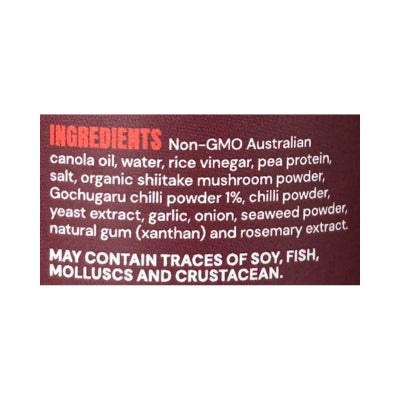 {"id":10127265530152,"title":"Umei Mayo - Gochugaru 180g","handle":"umei-mayo-gochugaru-180g","description":"\u003ch5\u003eReviews\u003c\/h5\u003e\n\u003cp\u003eReviews go here\u003c\/p\u003e\n\u003ch5\u003eIngredients\u003c\/h5\u003e\n\u003cp\u003eAny images, tags, filters, product categories, and any other information on this website showing ingredients, nutrition panels, or allergy statements are for guidance only, as manufacturers often change their formulations without notice. Please contact the manufacturer for the most up-to-date ingredient information, or email us to confirm the ingredients of the stock currently on hand.\u003c\/p\u003e","published_at":"2026-01-10T18:26:40+11:00","created_at":"2026-01-10T18:26:39+11:00","vendor":"Umei","type":"General","tags":["Savoury Sauces","Sydney Store"],"price":990,"price_min":990,"price_max":990,"available":true,"price_varies":false,"compare_at_price":null,"compare_at_price_min":0,"compare_at_price_max":0,"compare_at_price_varies":false,"variants":[{"id":51333847810344,"title":"Default Title","option1":"Default Title","option2":null,"option3":null,"sku":"726436912501","requires_shipping":true,"taxable":false,"featured_image":null,"available":true,"name":"Umei Mayo - Gochugaru 180g","public_title":null,"options":["Default Title"],"price":990,"weight":0,"compare_at_price":null,"inventory_quantity":4,"inventory_management":"shopify","inventory_policy":"deny","barcode":null,"requires_selling_plan":false,"selling_plan_allocations":[]}],"images":["\/\/crueltyfreeshop.myshopify.com\/cdn\/shop\/files\/UmeiGochugaruMayo.jpg?v=1768185411","\/\/crueltyfreeshop.myshopify.com\/cdn\/shop\/files\/UmeiGochugaruMayo-NutritionalInfo.jpg?v=1768255767","\/\/crueltyfreeshop.myshopify.com\/cdn\/shop\/files\/UmeiGochugaru-Ingredients.jpg?v=1768255767"],"featured_image":"\/\/crueltyfreeshop.myshopify.com\/cdn\/shop\/files\/UmeiGochugaruMayo.jpg?v=1768185411","options":["Title"],"media":[{"alt":null,"id":43289111691560,"position":1,"preview_image":{"aspect_ratio":1.0,"height":400,"width":400,"src":"\/\/crueltyfreeshop.myshopify.com\/cdn\/shop\/files\/UmeiGochugaruMayo.jpg?v=1768185411"},"aspect_ratio":1.0,"height":400,"media_type":"image","src":"\/\/crueltyfreeshop.myshopify.com\/cdn\/shop\/files\/UmeiGochugaruMayo.jpg?v=1768185411","width":400},{"alt":null,"id":43297117667624,"position":2,"preview_image":{"aspect_ratio":1.0,"height":400,"width":400,"src":"\/\/crueltyfreeshop.myshopify.com\/cdn\/shop\/files\/UmeiGochugaruMayo-NutritionalInfo.jpg?v=1768255767"},"aspect_ratio":1.0,"height":400,"media_type":"image","src":"\/\/crueltyfreeshop.myshopify.com\/cdn\/shop\/files\/UmeiGochugaruMayo-NutritionalInfo.jpg?v=1768255767","width":400},{"alt":null,"id":43297117700392,"position":3,"preview_image":{"aspect_ratio":1.0,"height":400,"width":400,"src":"\/\/crueltyfreeshop.myshopify.com\/cdn\/shop\/files\/UmeiGochugaru-Ingredients.jpg?v=1768255767"},"aspect_ratio":1.0,"height":400,"media_type":"image","src":"\/\/crueltyfreeshop.myshopify.com\/cdn\/shop\/files\/UmeiGochugaru-Ingredients.jpg?v=1768255767","width":400}],"requires_selling_plan":false,"selling_plan_groups":[],"content":"\u003ch5\u003eReviews\u003c\/h5\u003e\n\u003cp\u003eReviews go here\u003c\/p\u003e\n\u003ch5\u003eIngredients\u003c\/h5\u003e\n\u003cp\u003eAny images, tags, filters, product categories, and any other information on this website showing ingredients, nutrition panels, or allergy statements are for guidance only, as manufacturers often change their formulations without notice. Please contact the manufacturer for the most up-to-date ingredient information, or email us to confirm the ingredients of the stock currently on hand.\u003c\/p\u003e"}